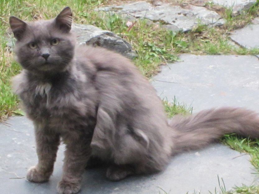 Så den første gang en stund etter jul, men trodde den bodde i nærheten. I vår begynte jeg å se den oftere og den så tynn og ustelt ut. Etter en stund prøvde jeg å sette ut litt mat til den for å se om den var sulten, og det var den absolutt.