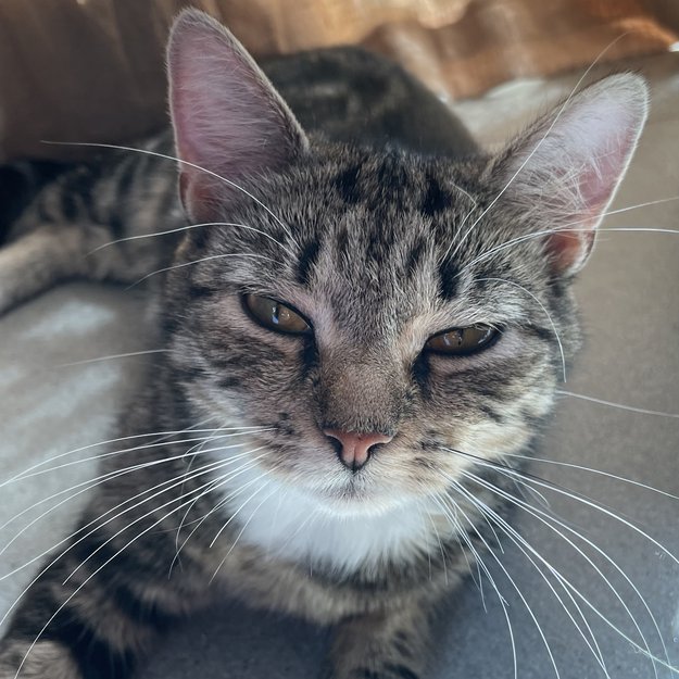 Hun (?) kom skrålende og hoppende inn vinduet hos meg flere ganger i dag, antar det er en Bengal-blanding. Ikke chippa (har sjekka hos veterinæren oppi gata), ganske tynn og sliten, men i ok form. Så nå sover pus i vinduskarmen, jeg håper noen kjenner henne igjen?