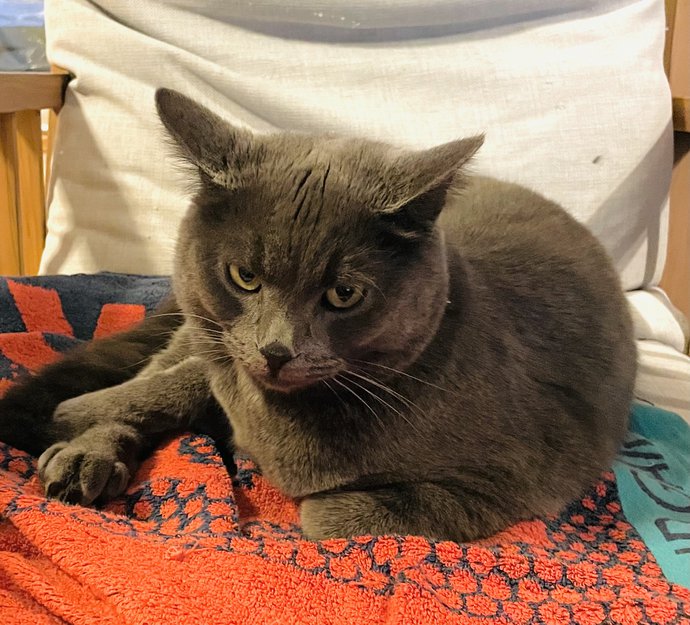 Rasmus har vært borte fra Haslum siden søndag kveld. Han er helt grå. Han pleier alltid å være i nærheten, så det er uvanlig. Han et dessverre veldig lite redd for biler, så jeg er redd for at han er blitt overkjørt. Han er både chippet og øremerket. Har noen sett han?
