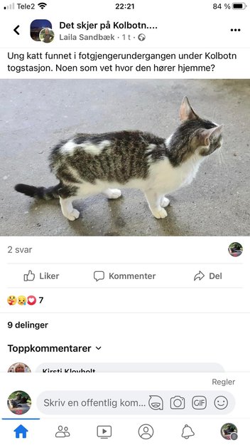 Ung kontaktsøkende katt. Veldig tynn. Observert på flere steder rundt Kolbotn torg/tågstasjon. Eier bes om å melde seg.