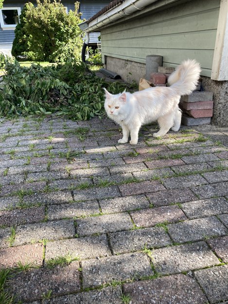 Vakker katt som fulgte etter noen spillere i orken, fulgte etter oss hjem og var veldig kontaktsøkende. Har vært utenfor hos oss i flere timer nå.
