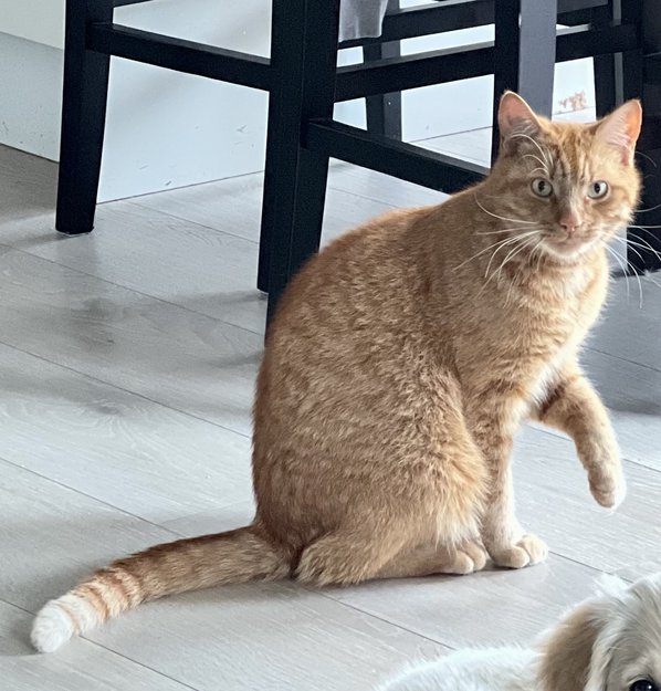 Katten er en ung gutt på 2 år, orange/rød farge, lyse øyne, kastrert og chippet.