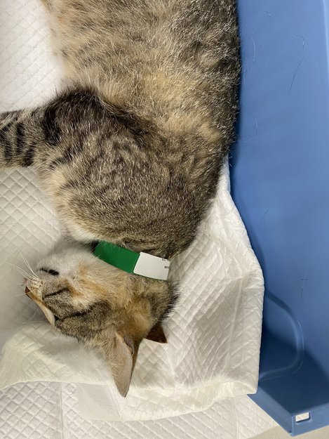 Død hunnkatt funnet ved Drøbaksveien 400, høyre kjørefelt mot Drøbak. Levert inn ved Dyresykehuset smådyr. Har melk i pattene, sannsynlig unge kattunger hjemme. Finner ingen chip.