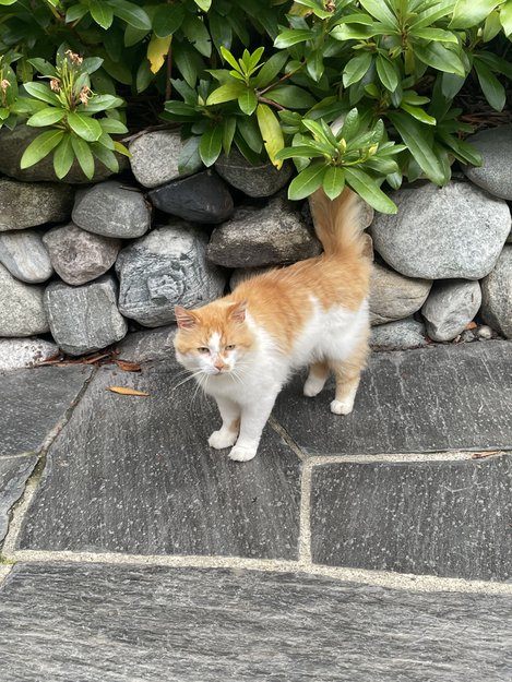 Katten har tuslet rundt i nabolaget i noen måneder og virker ikke til å ha et hjem.