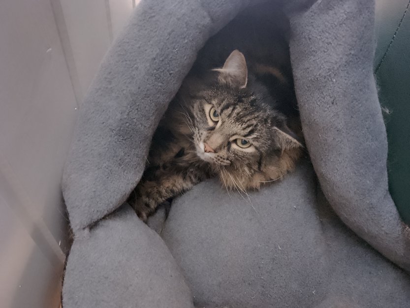 Veldig tykk og lang hale, om hun blir observert vil hun nok flykte, hun er redd mennesker og vil ikke søke kontakt. Glad i andre katter, om funnet gi beskjed, hvis hun er inne et sted ikke slipp henne ut og kontakt meg på telefon.