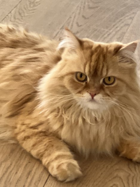 Katten er nylig klipt/barbert på magen. Ellers langhåret i pelsen. Lyder navnet Bentley,og er kosete og god.