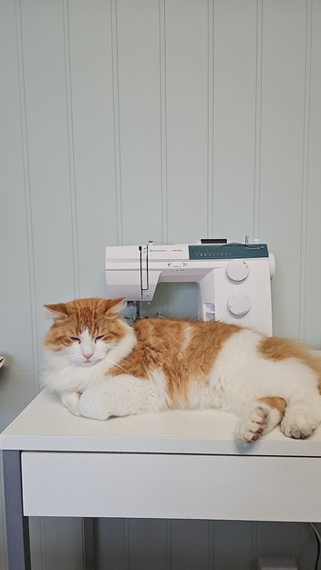 Han har grått flåttbånd rundt halsen. Han er skipskatt med 6 klør på alle poter, han har id tattoo i øret og har chip