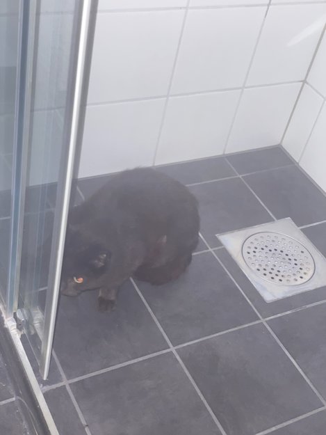 Mager svart katt som går ute. Såg den første gang i mai/juni. Den er sky og full i flott. Er det noen på Østhusvik som mangler en katt.