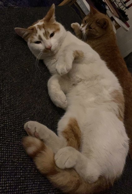 Lyder navnet Sofus. Er hvit og oransje, noe stripete på halen. Er id merket og har merke i øret også. Kan være litt redd av seg av og til. Sofus er 2 år, blir 3 år i september nå.