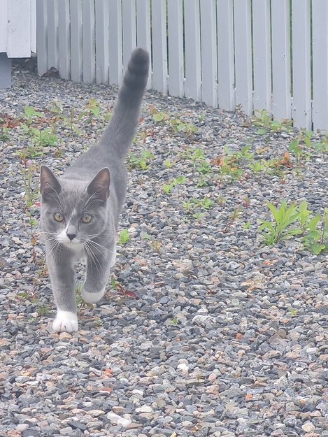 Grå med hvite poter hannkatt funnet i Lørenskog