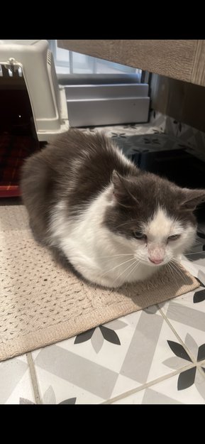 Tynn og uflid i pelsen. Sky ,men viser tegn til og ha hatt menneskelig kontakt tidligere. Har utenlandsk chip som er uregistrert.