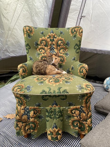 Ikke redd, men kommer sjelden helt bort til fremmede til vanlig. Veldig kosete om kvelden.