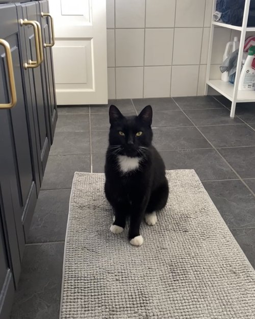 - ikke sky, mjauer høyt og skarpt, pleier å mjaue tilbake når vi kaller på han