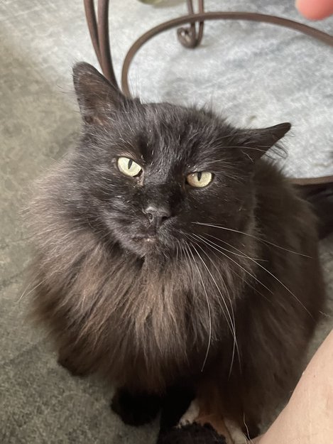 Furless valgte å være innekatt etter å ha blitt reddet av Dyrebeskyttelsen og har aldri vist interesse for å gå ut. I midten av juli ble et vindu stående åpent, alle kattene våre var ute. Alle kom tilbake bortsett fra pelsløse. Men Furless kom inn i gården vår neste dag, men var for redd til å krysse gården og komme inn i huset. Han stakk av igjen. To uker senere så vi ham over gaten og han kom til meg og jeg klarte å få ham inn i huset, men naboen kom bort for å se hvordan han hadde det, og han ble redd og hoppet fra balkongen på soverommet vårt. Det har gått to uker siden den gang. Vi har nå flom og slutter med regn, og jeg frykter for hans sikkerhet. Han vil mjau kontinuerlig når han ser folk selv om han er redd og gjemmer seg. Han kan ikke fanges i en felle og det var svært vanskelig for Dyrebeskyttelsen med vår hjelp å fange ham for mange år siden. Han er veldig elsket og savnet!