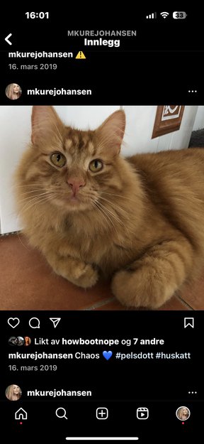Vi er nyinnflyttet i området. Han ble sluppet ut for første gang denne dagen, og var desverre ute da det kom ett overraskende tordenvær. Han har siden dette vært borte, og er ikke registrert på katteluken siden dette.