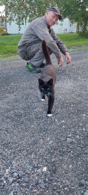 Helt ukjent katt som tusler rundt i nabolaget vårt. Veldig kosete og kontaktsøkende.