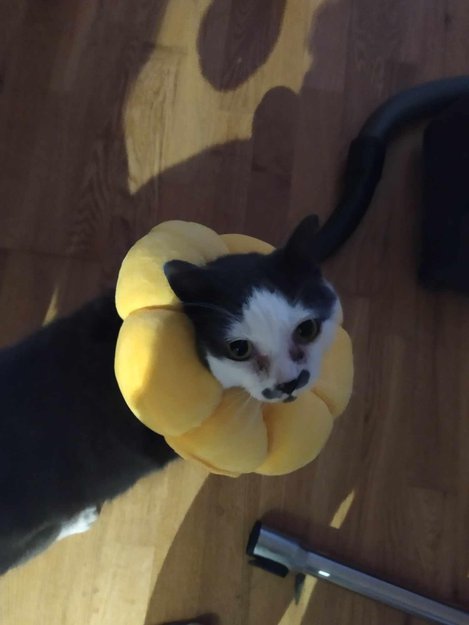 Noen som har sett henne? Hun holder til bak kiwi på kilen. Hun er syk så derfor har ho krage å skal ikke være ute, men klart på ett eller annet vis å snike seg ut. Tror hun har kommet seg ut i går kveld/natt en gang. Hun hadde på seg den gule kragen som er på bilde da ho forsvant. Sjekk gjerne garasjer og ute boder ho kan ha kommet seg inn i.