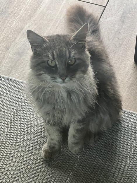 Veldig kjælen og kontaktsøkende katt, som oppsøkte oss hjemme. Er ganske stor med tynn. Lang pels og ekstra lang hale. Nydelig katt💖