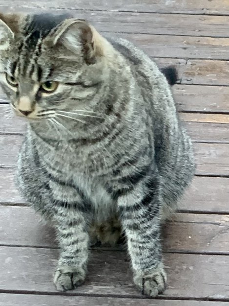 Litt rund, svært tillitsfull og kontaktsøkende når hun blir trygg. Klatrer på tak og i trær. Nysgjerrig. Søker ofte inn i garasjer, på loft eller i kjellere. Kan være stengt inne.