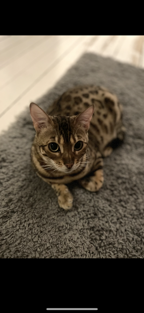 Katten min Vibsey av rasen Bengal ble borte i natt mellom 02 - 06tiden, hun har er innkatt og hoppet ut fra verandaen. Hun forsvant fra Hans Hansens Vei 141, Øren, Drammen. Hun er spraglete, brun, hvit og svart- med grønne øyne.
