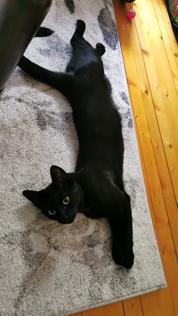 Pus er en svart korthåret kastrert hannkatt. Han har noen hvite hår på halsen. Han heter pingla, men hører mer på pus. Kan være litt sjenert og sky med andre mennesker.
