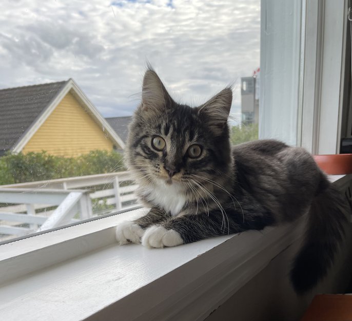 Max er kattunge (5 mnd) og ble skremt av en voksen nabokatt. Han forsvant i full panikk!