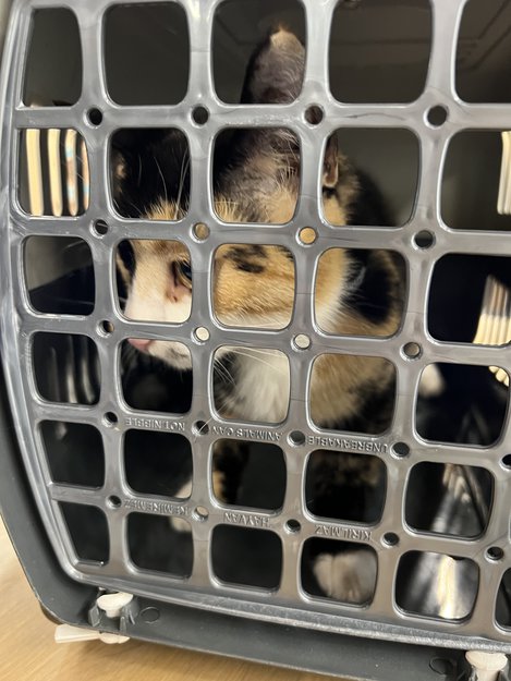 Fant en katt på parkeringen ved Veterinærhøyskolen, NMBU. Den hadde kroppssele på seg så tenkte den kanskje hadde slitet seg løs. Tok den bort i bur til Dyresykhuset Smådyr og leverte inn den til dem. De venter på overtakelse fra dyrebeskyttelsen og skal sjekke chip.