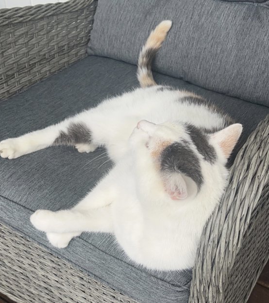 Tricolourfarget. Den er veldig kosete og tillitsfull. Glad i mennesker.