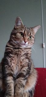 Celina er ca. 2,5 kg hunnkatt. Hun har brunaktig pels med striper på og hvit snute. Øynene hennes har grønn/gulaktig farge.