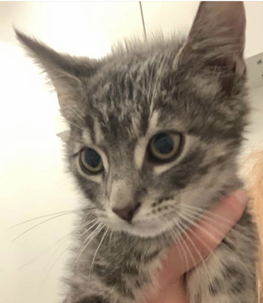 Kattunge ca 12 uker, funnet alene av en dame. Kattungen var våt,kald,alene og redd. Ingen søsken eller mor observert i område.