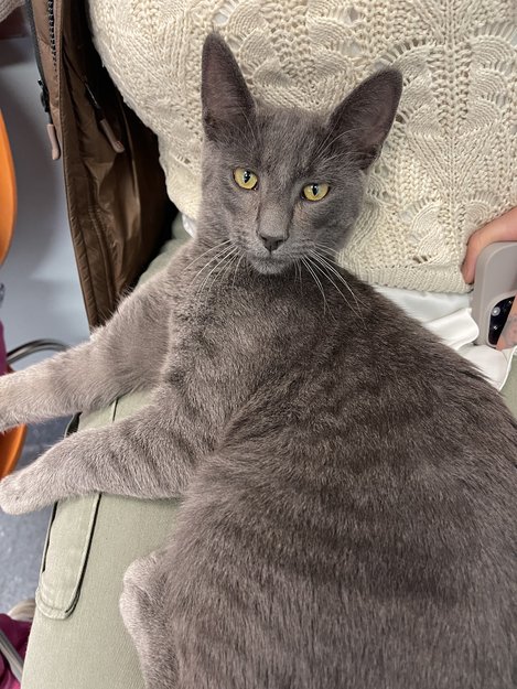 En grå kattunge på ca 6månder ikke kastrert og ikke id-merket funnet på Fjellhamar.
