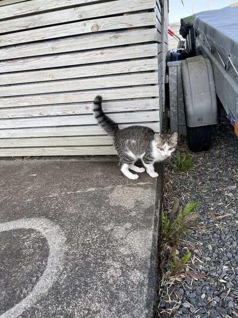 Kattunge oppholder seg ved huset vårt på Gausel. Mjauer mye, er ikke sulten, og virker tam. Altfor ung til å være ute på egenhånd. Vi kan ikke ta den inn pga hund. Er det noen som eier den, eller som kan ta den inn?