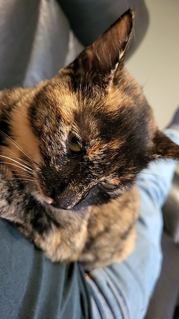 Ganske liten, mangler en negl/klo på venstre bakfot. Er barbert på ene forfoten.