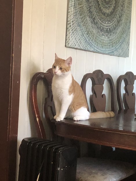 Peko satt ute på veranda. Dette er noe han pleier å gjøre ofte, og han er ikke en som hadde hoppet ned, så vi var ikke no særlig bekymra for at han plutselig skulle gjøre det. Men i går kveld, den sjette september, falt han ned. Pappa løpte ut for å se om Peko var skadd og får å hente han tilbake. Men når pappa skulle det, løp Peko vekk, forvirret og redd siden det er hans første gang ute. Det var siste gang vi så han :(