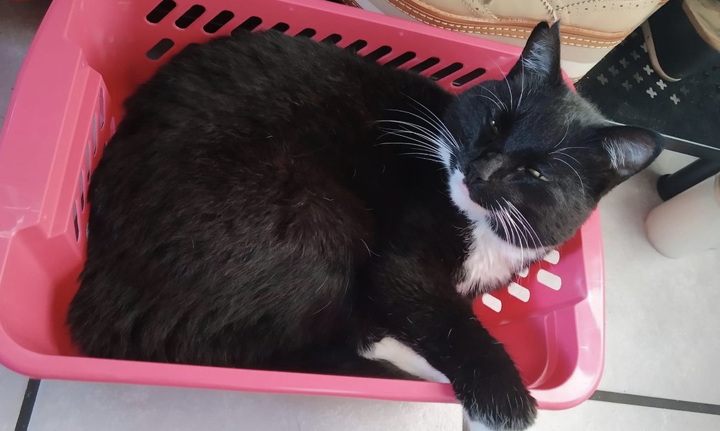 Lucius har 3 bein ettersom det bakbeinet ble amputert etter en bilulykke for noen år siden.
