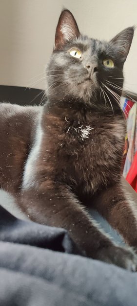 Hun er en heltsvart katt med litt hvitt hår på brystet med gule øyne. Hun har også veldig myk og glatt pels.