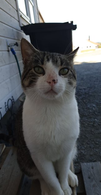 Grå/hvit/svart hannkatt savnet i Austrheim