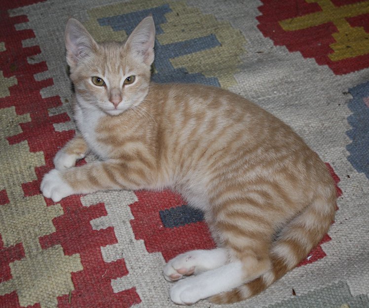 Bortsett fra farge, den ene lys beige, den andre mørk spraglet, har de to kattunger ingen spesielle kjennetegn, kanskje litt større ører enn vanlig. Bare den lyse ble tatt hånd om, den andre forsvant.