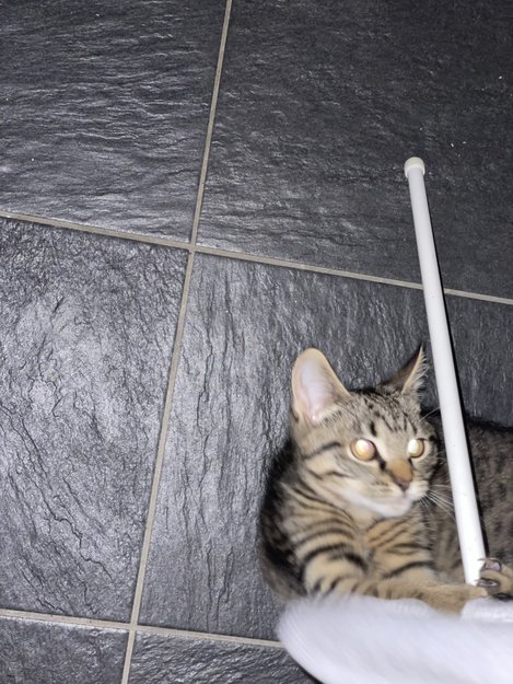 Var på Kiwi for å handle lørdagskveld og såg en liten kattunge som er alt for liten til å være ute på egenhand, så eg tok henne med hjem sånn eg kunne prøve og finne eieren hennes.