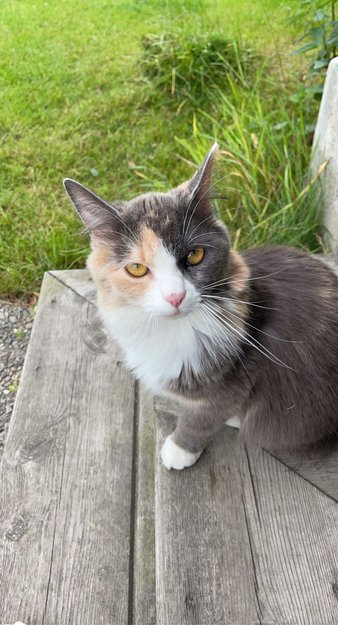 Grå/hvit/orange hunnkatt savnet i Larvik