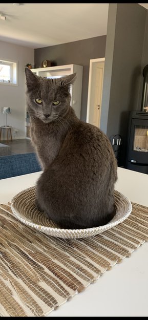 Pleier ikke å være lenge borte og ikke glad i dårlig vær som det er nå. Har ikke vært inne på to netter, noe som er veldig utypisk oppførsel. Nysgjerrrig type som er litt klønete. Har egen katteluke.