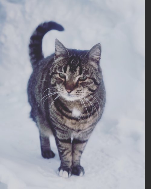 Hvite tær på forlabben. Ca 6kg. Grovt ansikt.