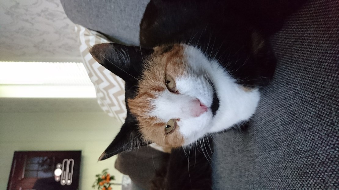 Hun er veldig kosette og følger etter folk. Hun er liten.