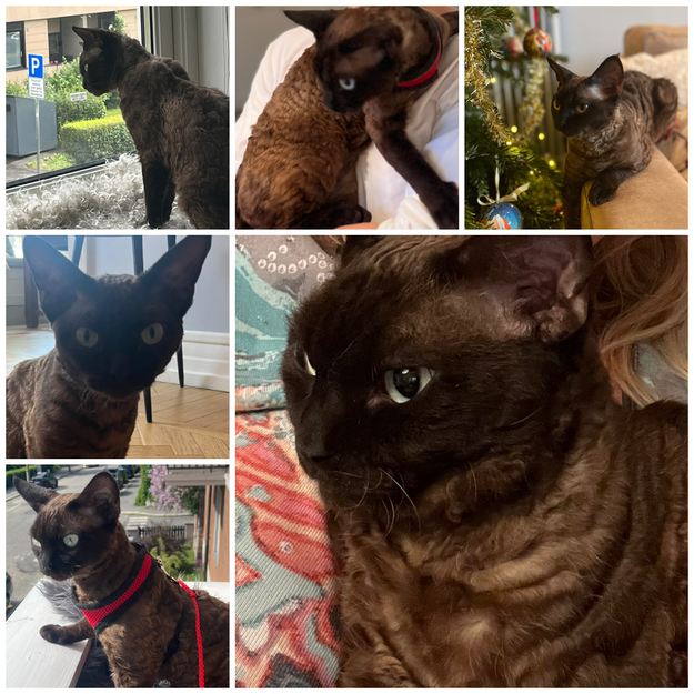 Ivo smatt ut av leiligheten i morges, i krysset mellom Niels Juelsgate og Mogens Thorsens gate. Han er nylig kastrert, er ikke utevant, men usedvanlig kosete og vakker liten Devon Rex med mørkebrun fløyelspels.