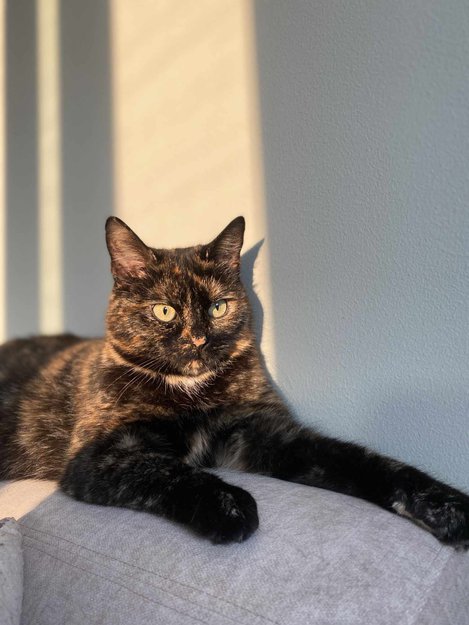 Skilpadde farget. 3 farger, tam jentepus gått i Askim over lengre tid. Innmelder søkte etter eier uten hell.
