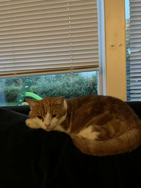 Cheddar klarte å stikke under bytte av bil og bur ifm omplassering. Løp fra Esso i kongens gate retning verket som jeg forsto på en parkert bussjåfør som sist så han. Han er chippet og kastrert. Veldig snill, men sikkert veldig redd i en helt ny by som bare skulle være et mellomstopp.