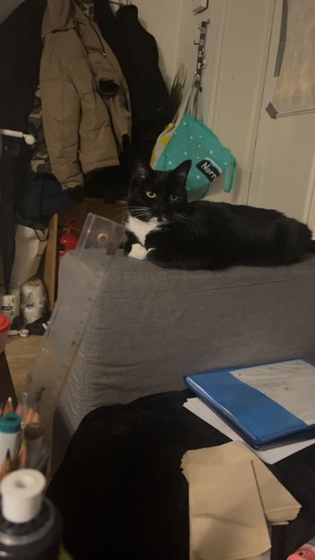 Eg sku tatt na te vetireneren og prøvde få na i et reise bur. Hun har ptsd så hun reagerte ikke fint på de å sprang ut vinduet. Hun e 4år snart 5 hun e chippet men de står ikke på meg for eg fikk na gjennom en Facebook gruppe.