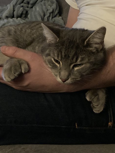 Stripete grå katt, har 5 tær og 6 negler på potene fremme og 5 tær på bakbeina