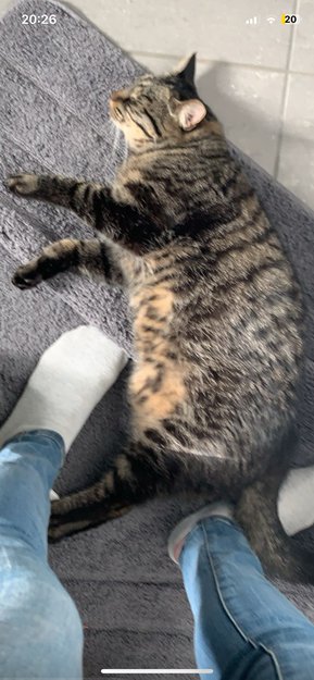 Grå, tabby hunnkatt var savnet i Moss
