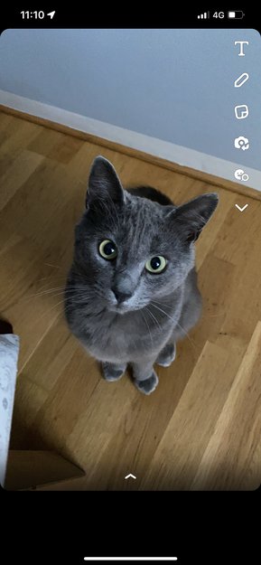 Han er en grå hann katt med grønne øyne å er kastrert med et lite arr på nasen å et lite kutt i øre. Han er litt sky men veldig kosete om han kjenner deg.